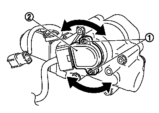 7. Turn the VVEL control shaft position sensor (2) right and left while monitoring the output voltage of "VVEL POSITION SENB1" or "VVEL POSITION SEN-B2" and adjust the output voltage to be within the standard value.