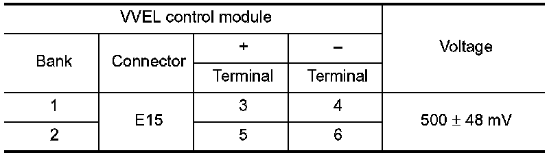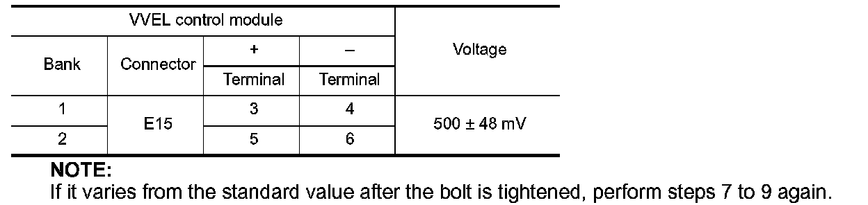 10. Reconfirm that the output voltage of VVEL control shaft position sensor is within the standard value.