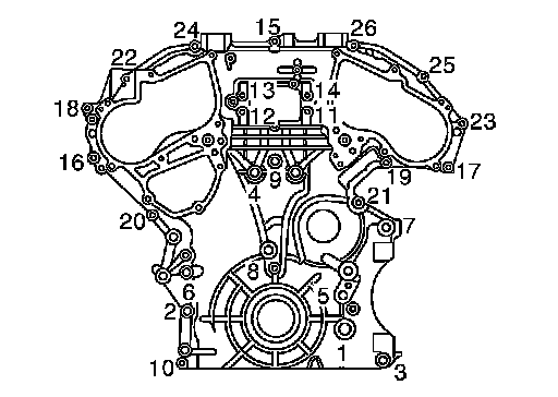 M10 bolts : 1, 2, 3, 4, 5, 6, 7 55.0 Nm (5.6 kg-m, 41 ft-lb)