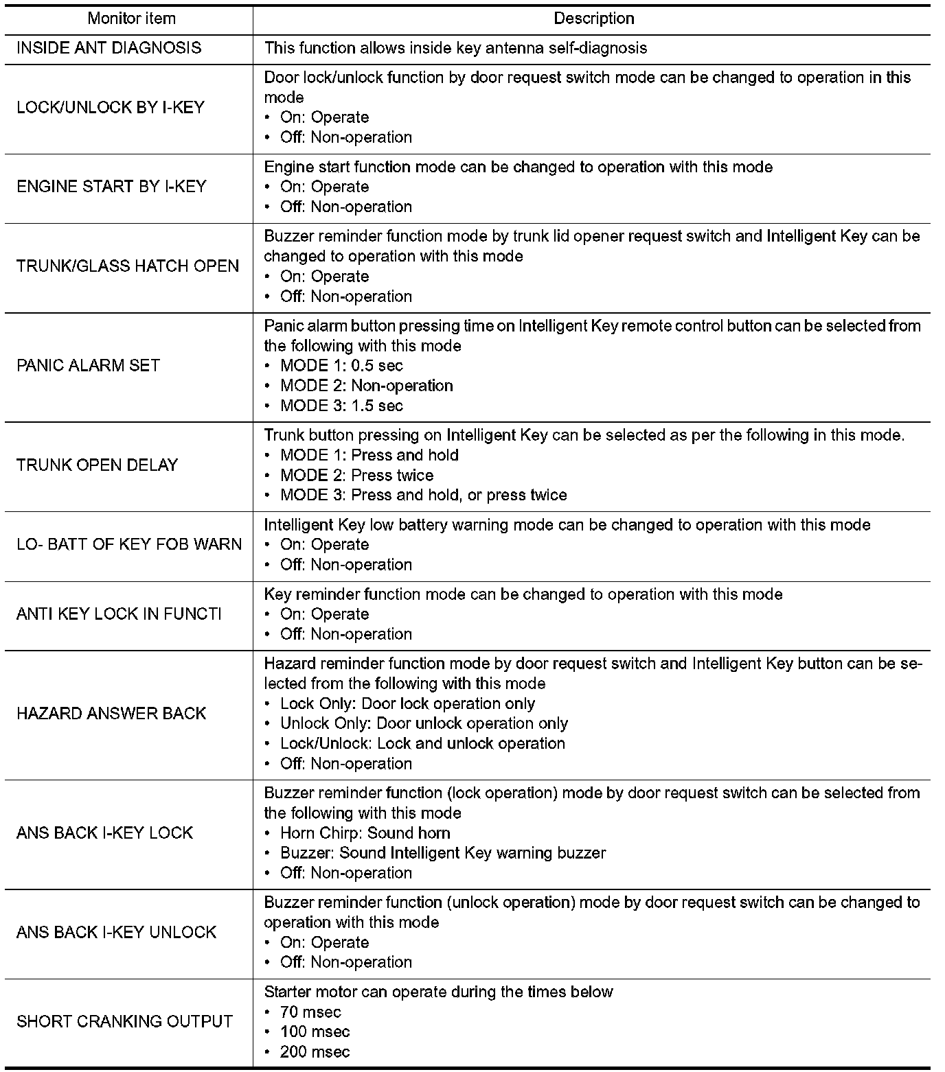 INTELLIGENT KEY : CONSULT-III Function (