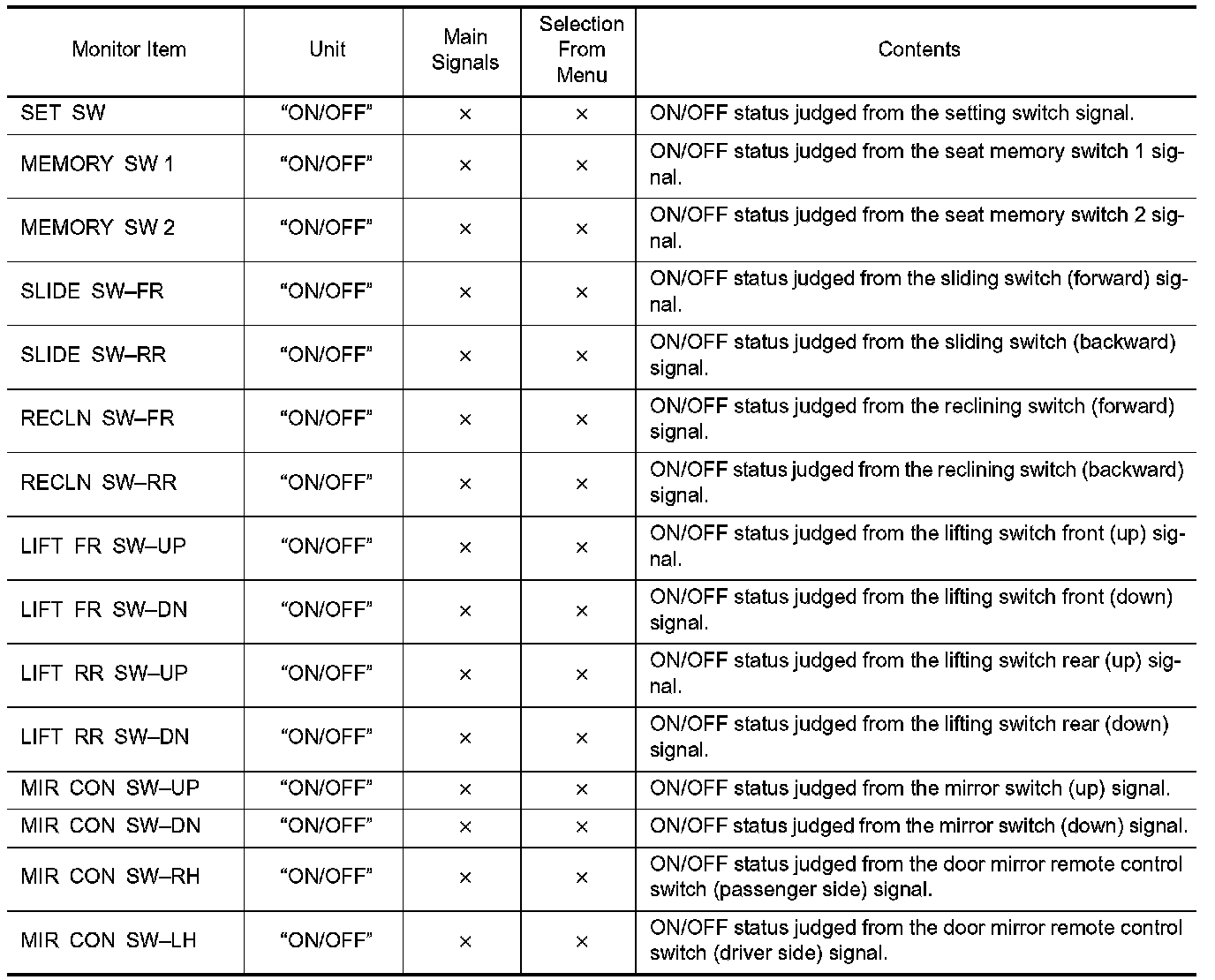DIAGNOSIS SYSTEM (DRIVER SEAT CONTROL UNIT)