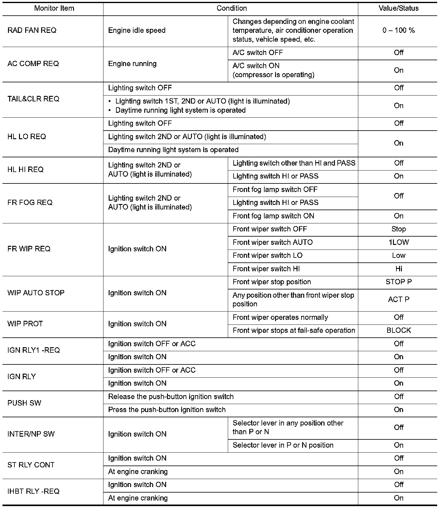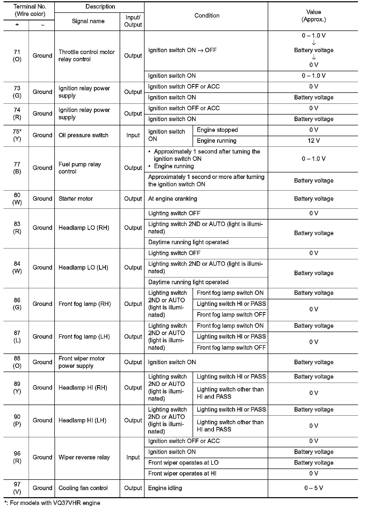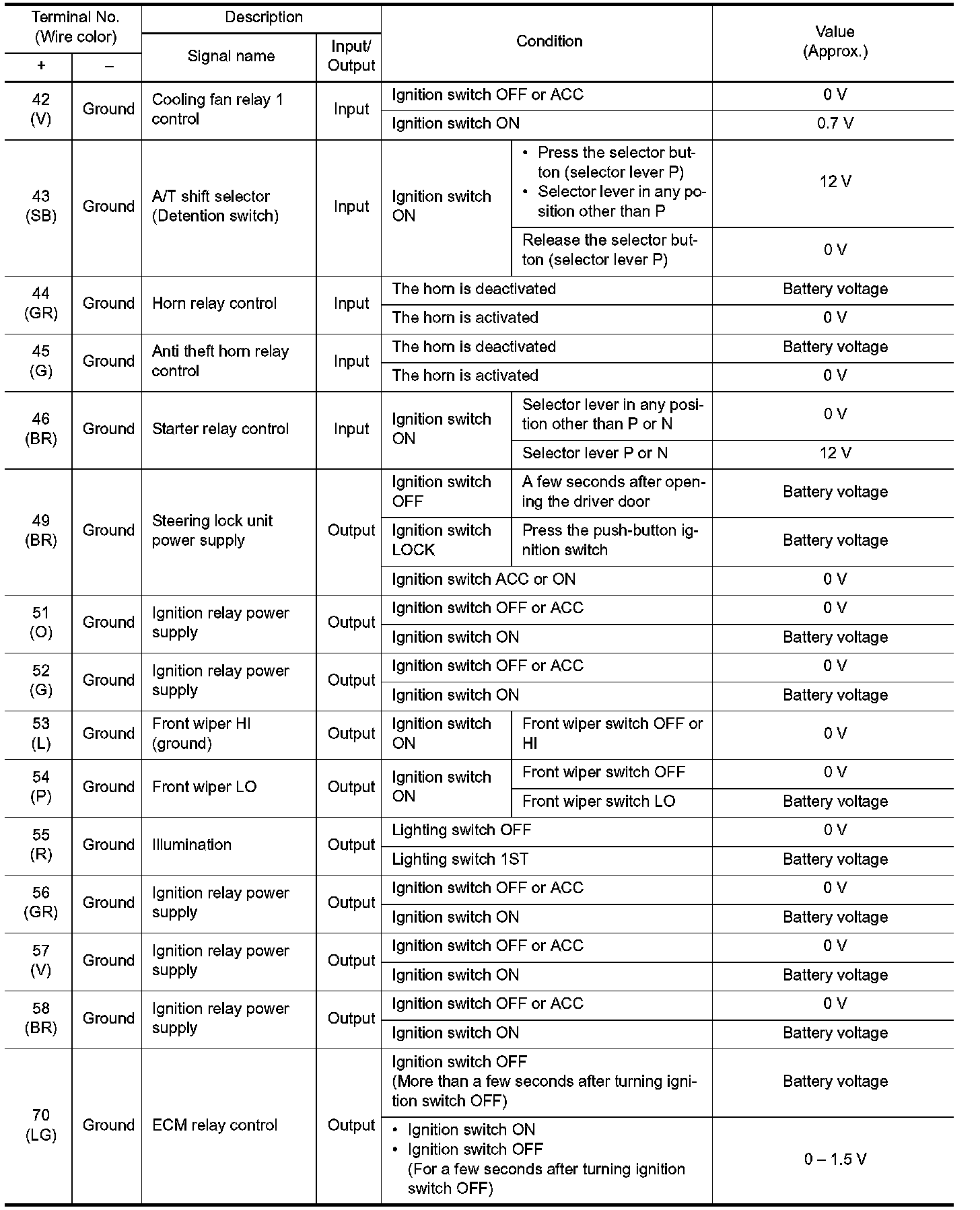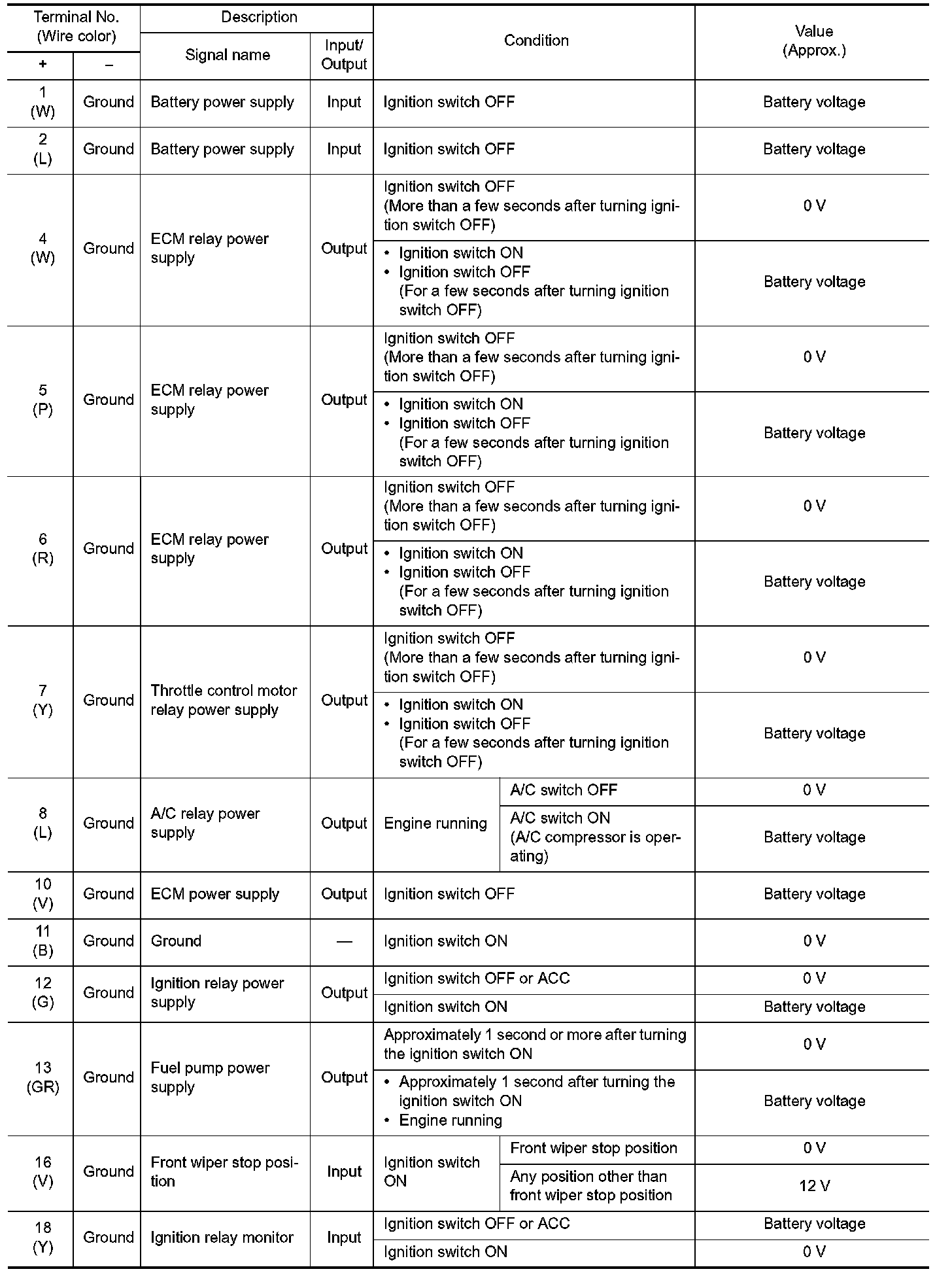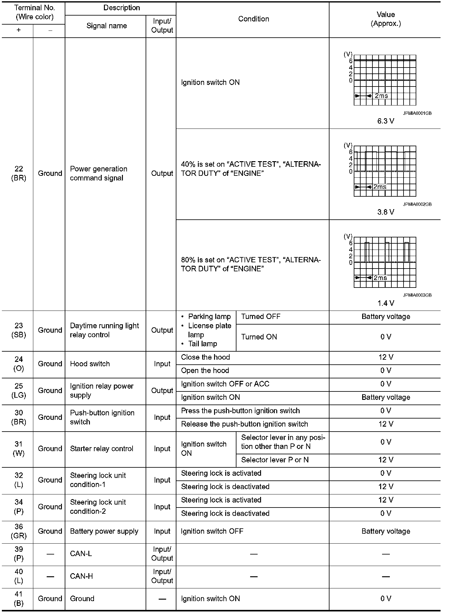 Pinout Values and Diagnostic Parameters