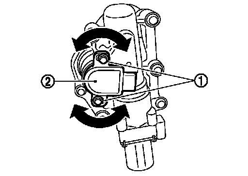 8. Turn the VVEL control shaft position sensor (2) clockwise and counterclockwise while monitoring the output voltage between the VVEL control module terminals with a tester and adjust the output voltage to be within the standard value.