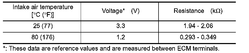 The intake air temperature sensor is built-into the mass air flow sensor. The sensor detects intake air temperature and transmits a signal to the ECM.