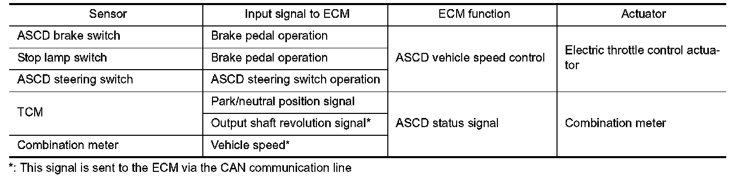 - Automatic Speed Control Device (ASCD) allows a driver to keep vehicle at predetermined constant speed without depressing accelerator pedal. Driver can be set the vehicle speed in the set speed range.