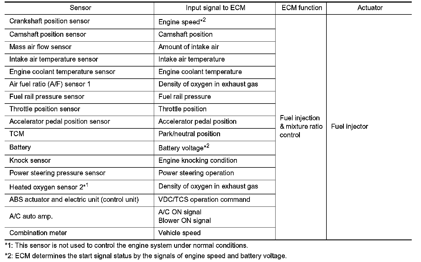 The mixture ratio feedback control system monitors the mixture ratio signal transmitted from A/F sensor 1.