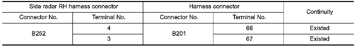 NO - Repair the main line between the side radar RH and the harness connector B201.
