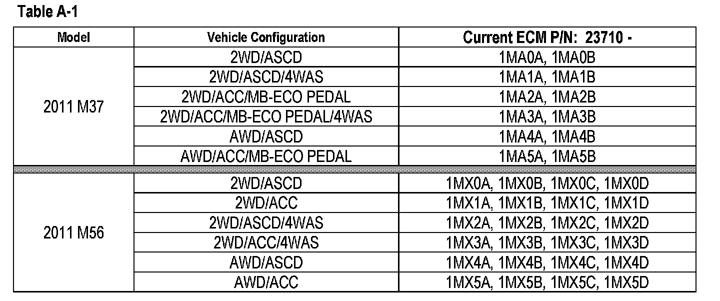 4. Compare the Part Number you wrote down to the numbers in the Current ECM P/N column in Table A-1.
