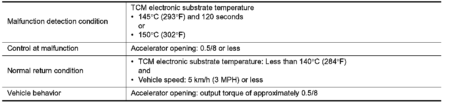 The TCM becomes the protection control status temporarily to protect the safety when the safety of TCM and transmission is lost. It automatically returns to the normal status if the safety is secured.