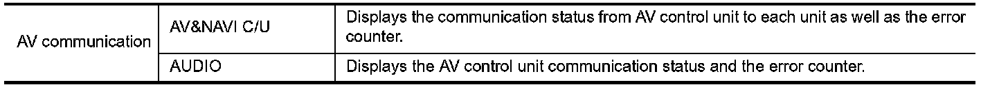 When "AV communication" of "CAN Diag Support Monitor" is selected, the following function will be performed.