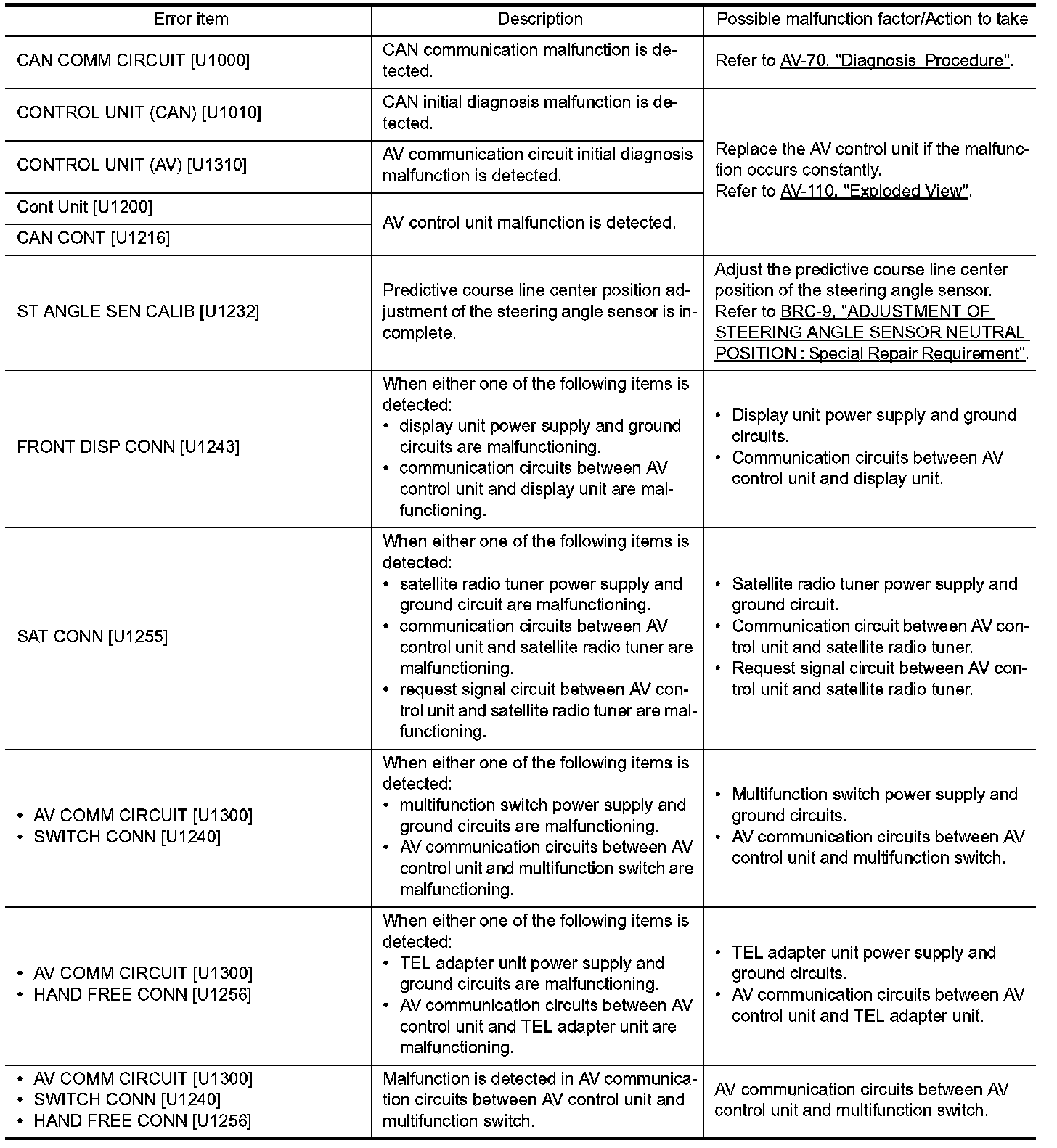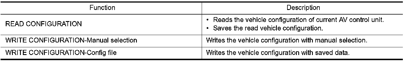 CONSULT-III performs the following functions via the communication with the AV control unit.