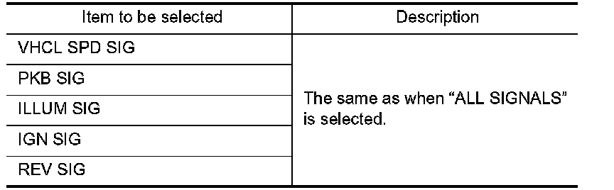 Allows the technician to select which vehicle signals should be displayed and displays the status of the selected vehicle signals.