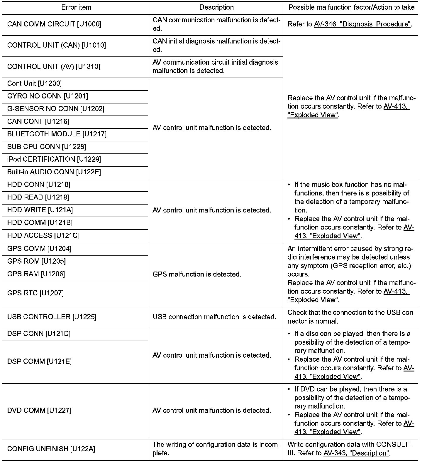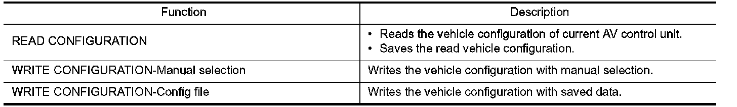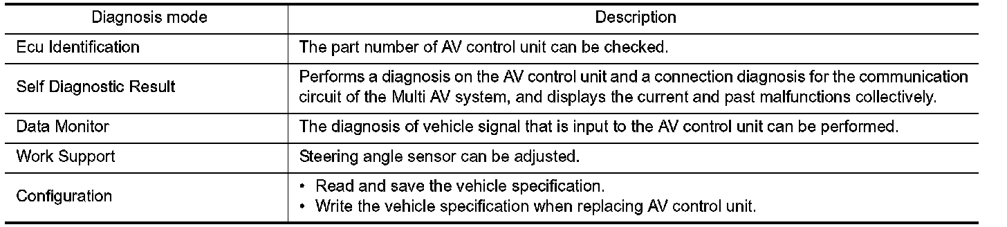 CONSULT-III performs the following functions via the communication with the AV control unit.