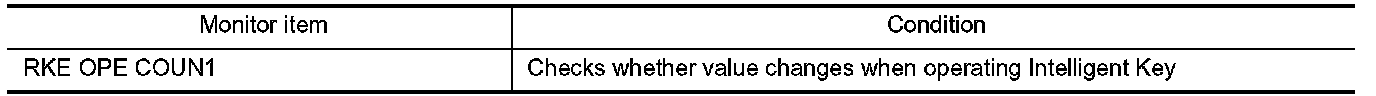 Check ("RKE OPE COUN-1") in BCM "Data Monitor" mode using CONSULT-III.