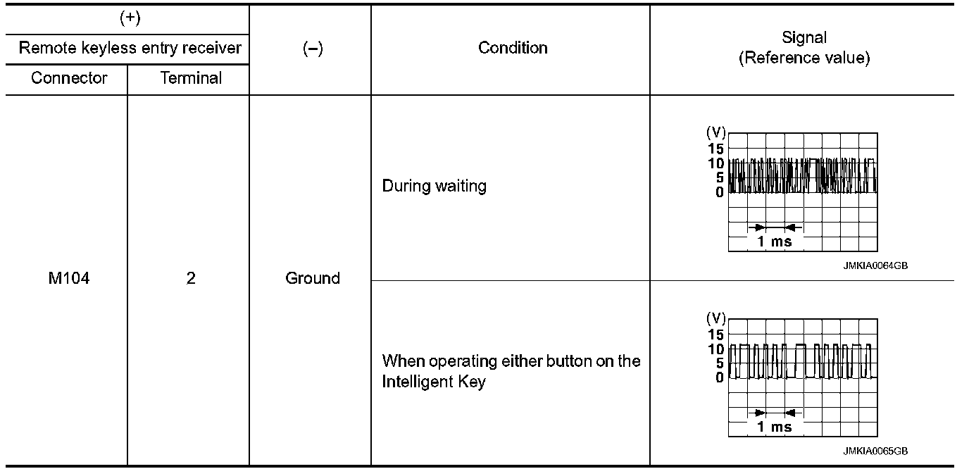 2.Check signal between remote keyless entry receiver harness connector and ground using oscilloscope.