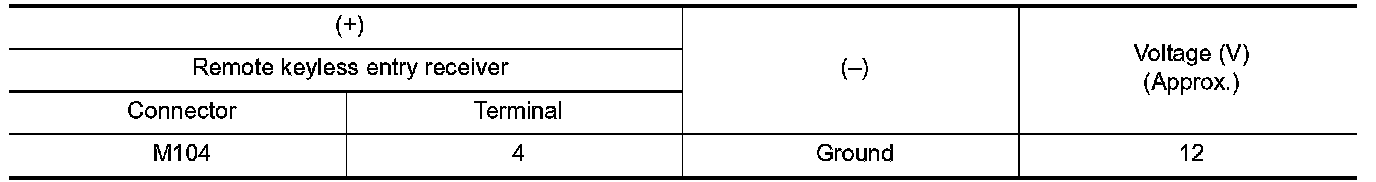 2.Check voltage between remote keyless entry receiver harness connector and ground.