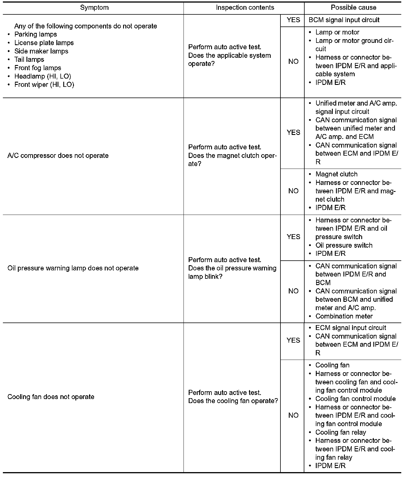 - The auto active test facilitates troubleshooting if any systems controlled by IPDM E/R cannot be operated.