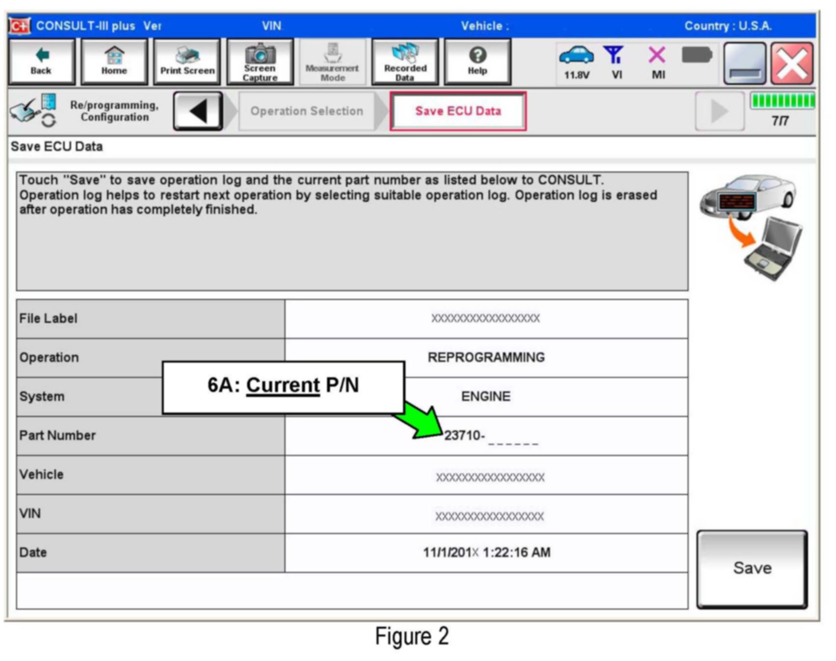 1. Connect the CONSULT PC to the vehicle to begin the reprogramming procedure.