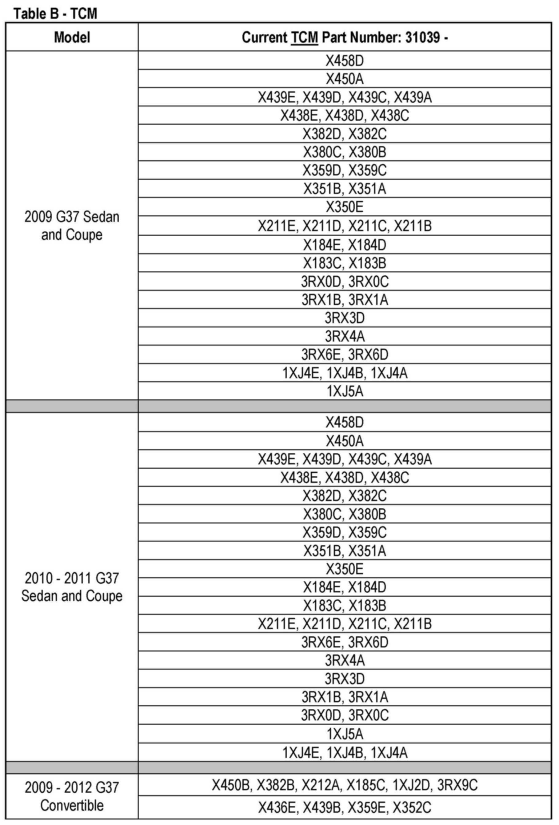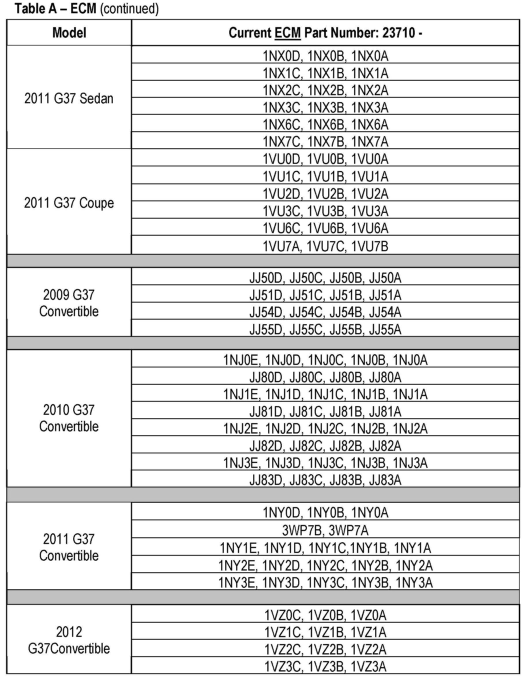 ^ If there is not a match, reprogramming does not apply. Make sure to check both ECM and TCM for a match.