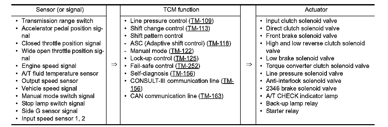 - The A/T senses vehicle operating conditions through various sensors or signals. It always controls the optimum shift position and reduces shifting and lock-up shocks.