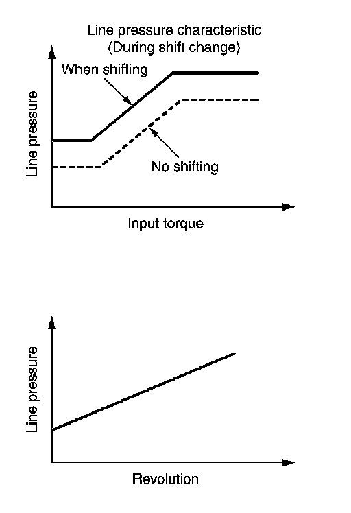- The TCM has stored in memory a number of patterns for the optimum line pressure characteristic for the driving state.
