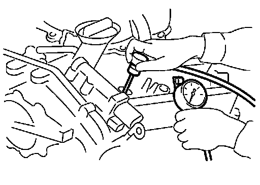 7.Install compression gauge with an adapter (commercial service tool) onto spark plug hole.
