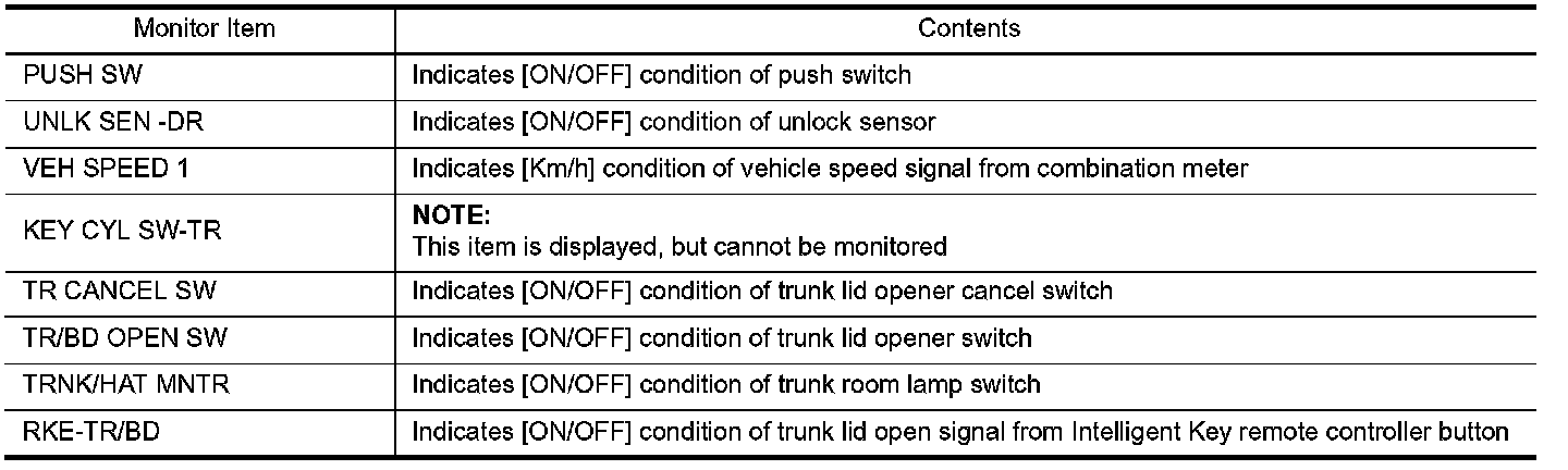 TRUNK : CONSULT-III Function (BCM - TRUNK)