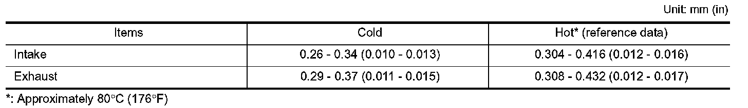 VALVE CLEARANCE