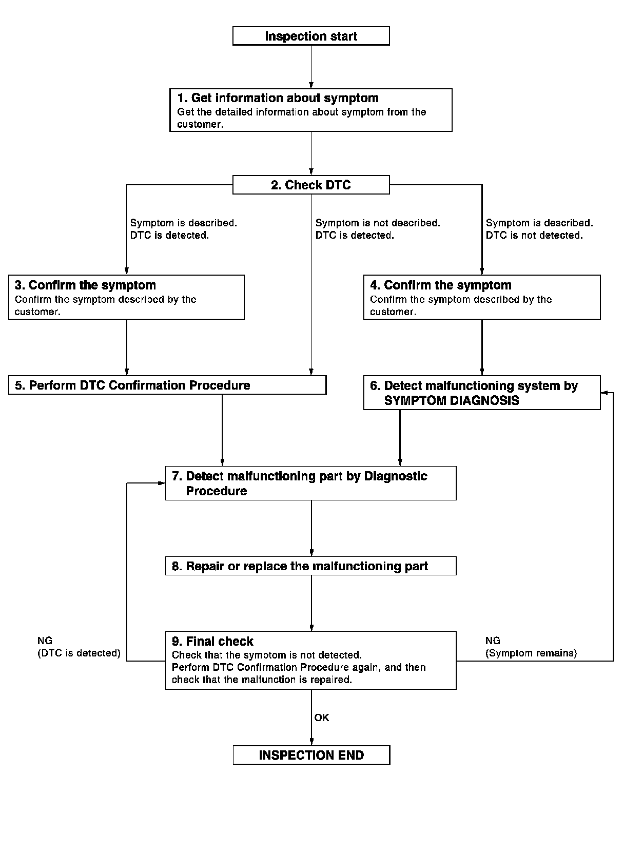 When symptom was described by the customer, refer to confirmed symptom in step 3 or 4, and check that the symptom is not detected.