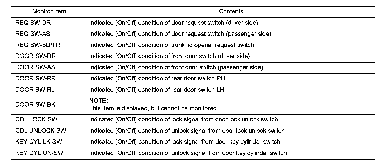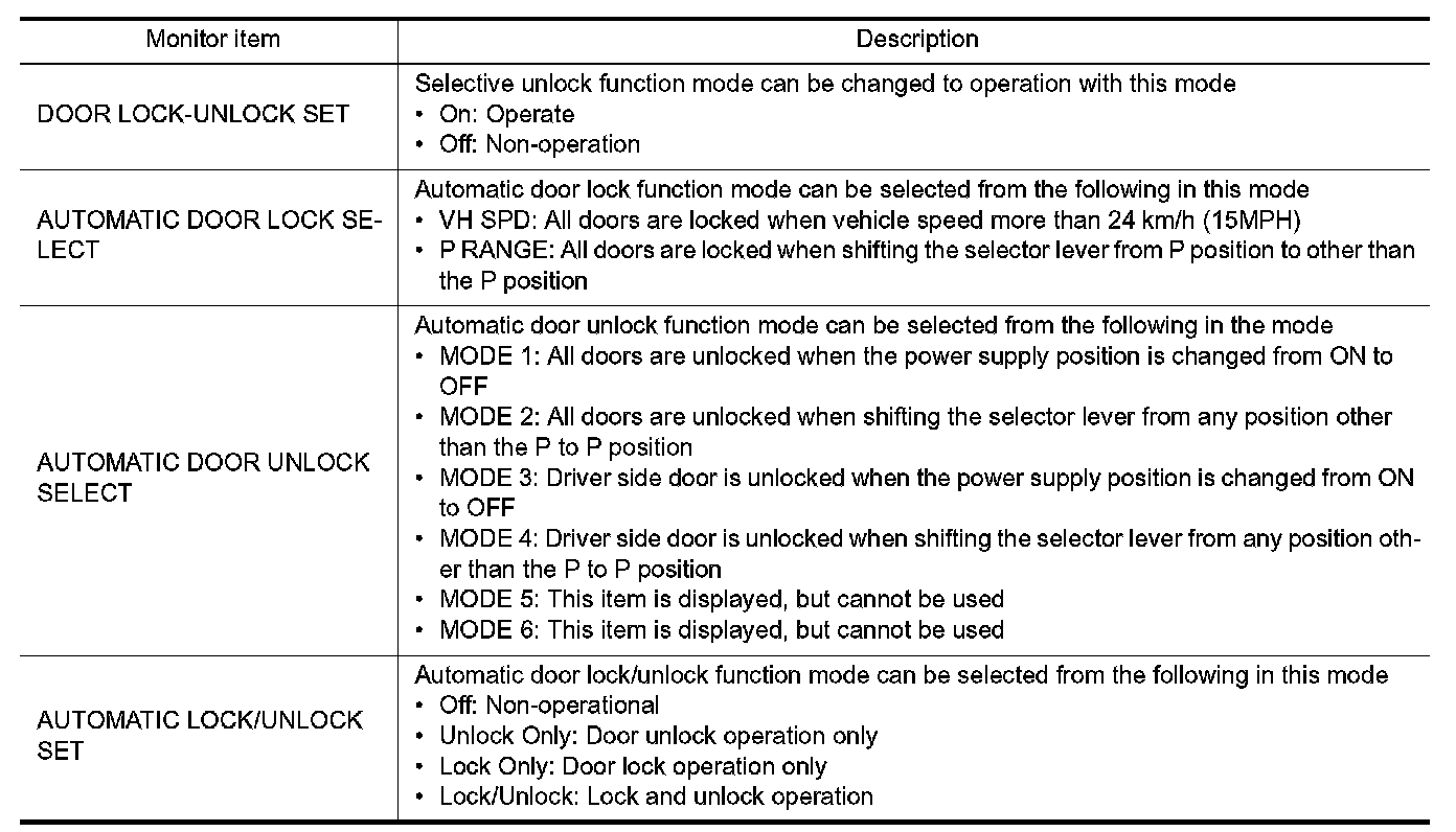 DOOR LOCK : CONSULT Function (