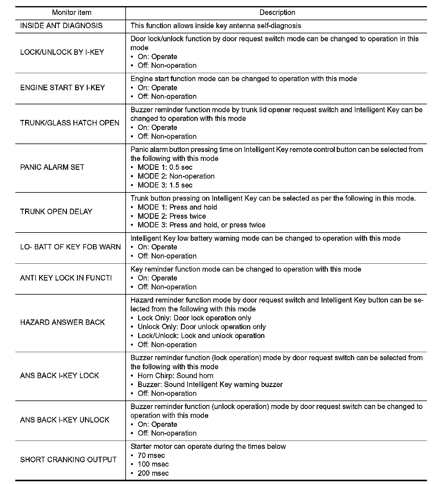 INTELLIGENT KEY : CONSULT Function (BCM - INTELLIGENT KEY)