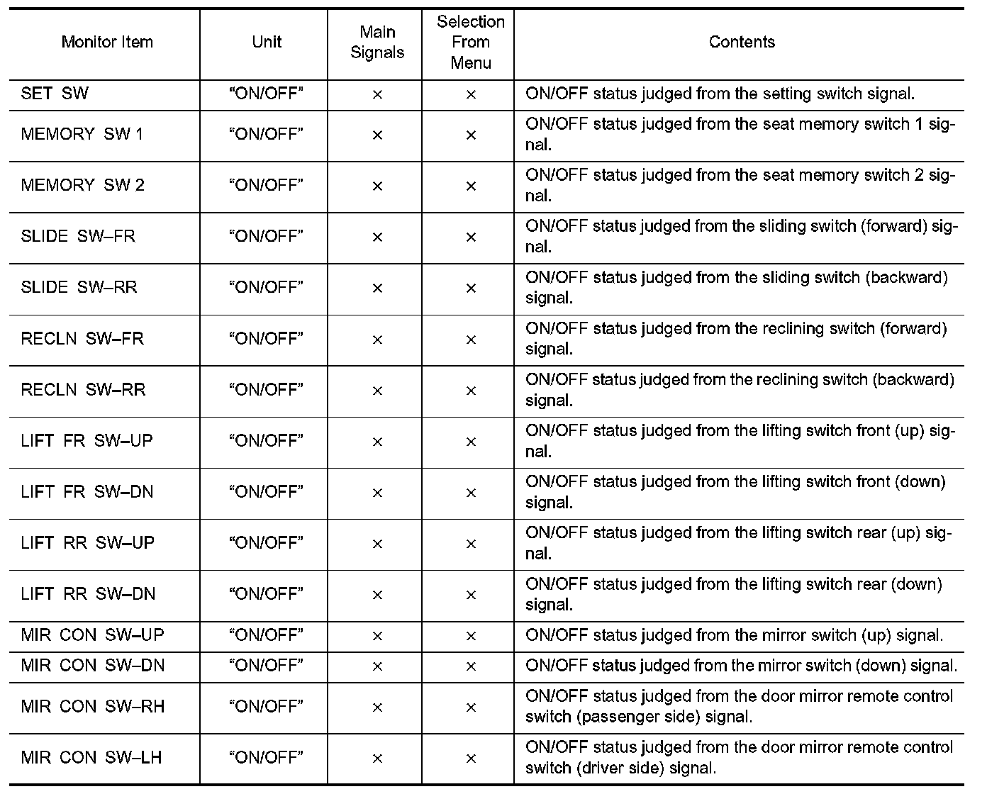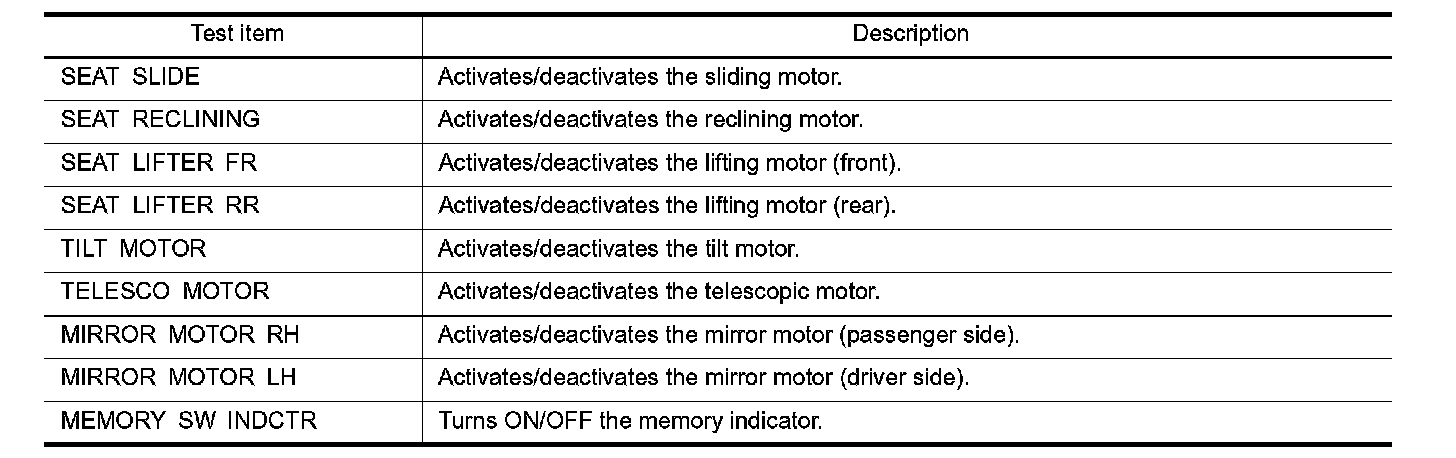 DIAGNOSIS SYSTEM (DRIVER SEAT CONTROL UNIT)