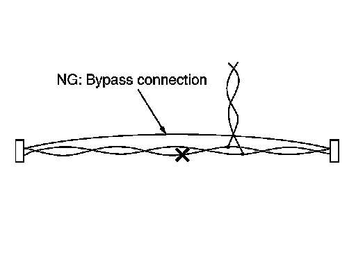 Bypass connection may cause ITS communication error. The spliced wire becomes separated and the characteristics of twisted line are lost.