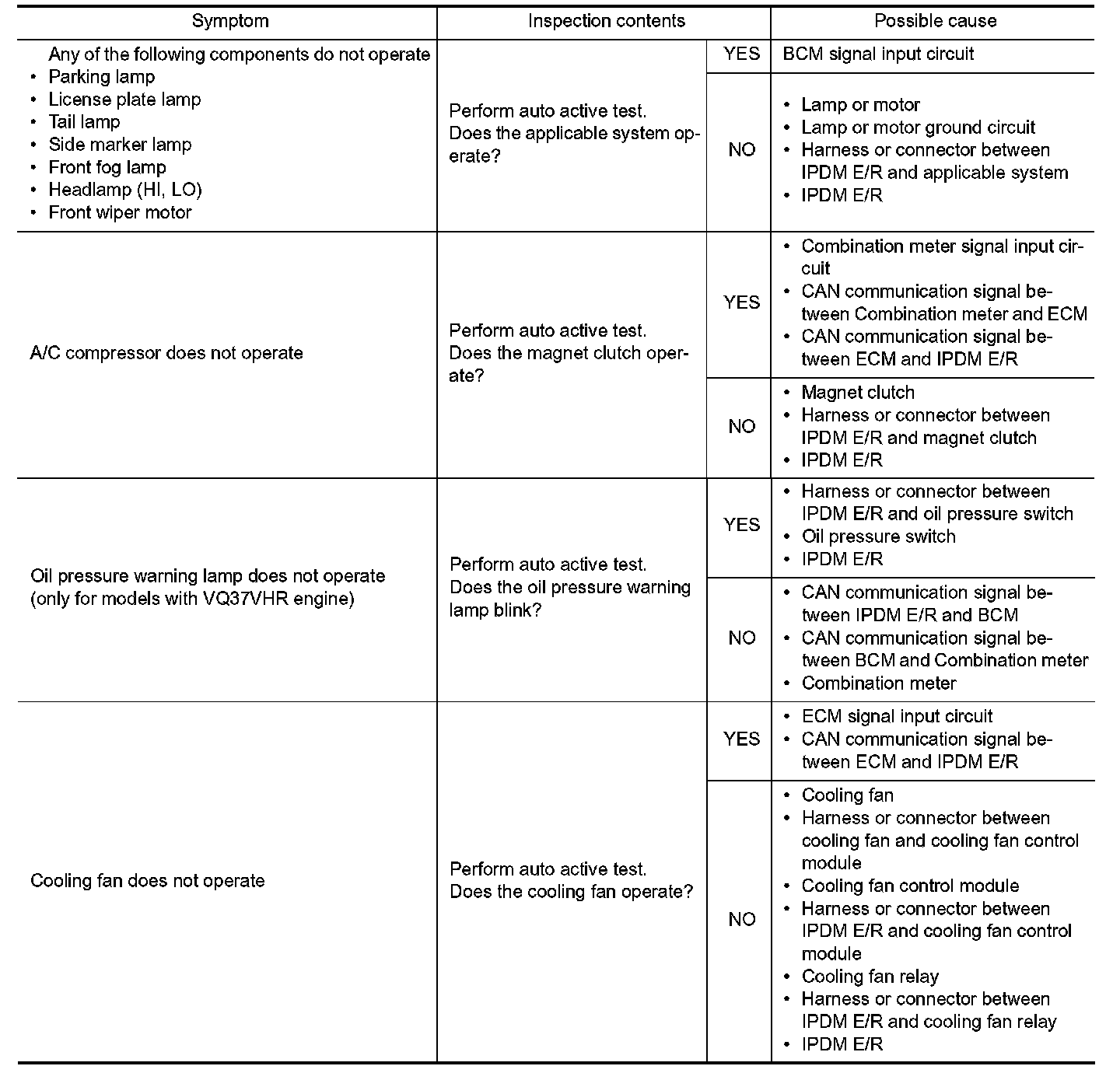 - The auto active test facilitates troubleshooting if any systems controlled by IPDM E/R cannot be operated.