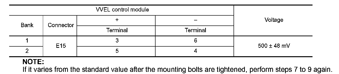 10.Reconfirm that the output voltage of VVEL control shaft position sensor is within the standard value.