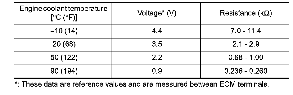 ECM. The modified signal returns to the ECM as the engine coolant temperature input. The sensor uses a thermistor which is sensitive to the change in temperature. The electrical resistance of the thermistor decreases as temperature increases.