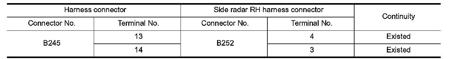 NO- Repair the main line between the harness connector B245 and the side radar RH.