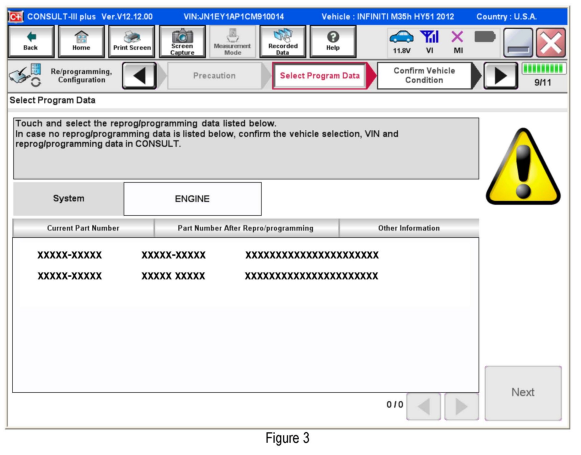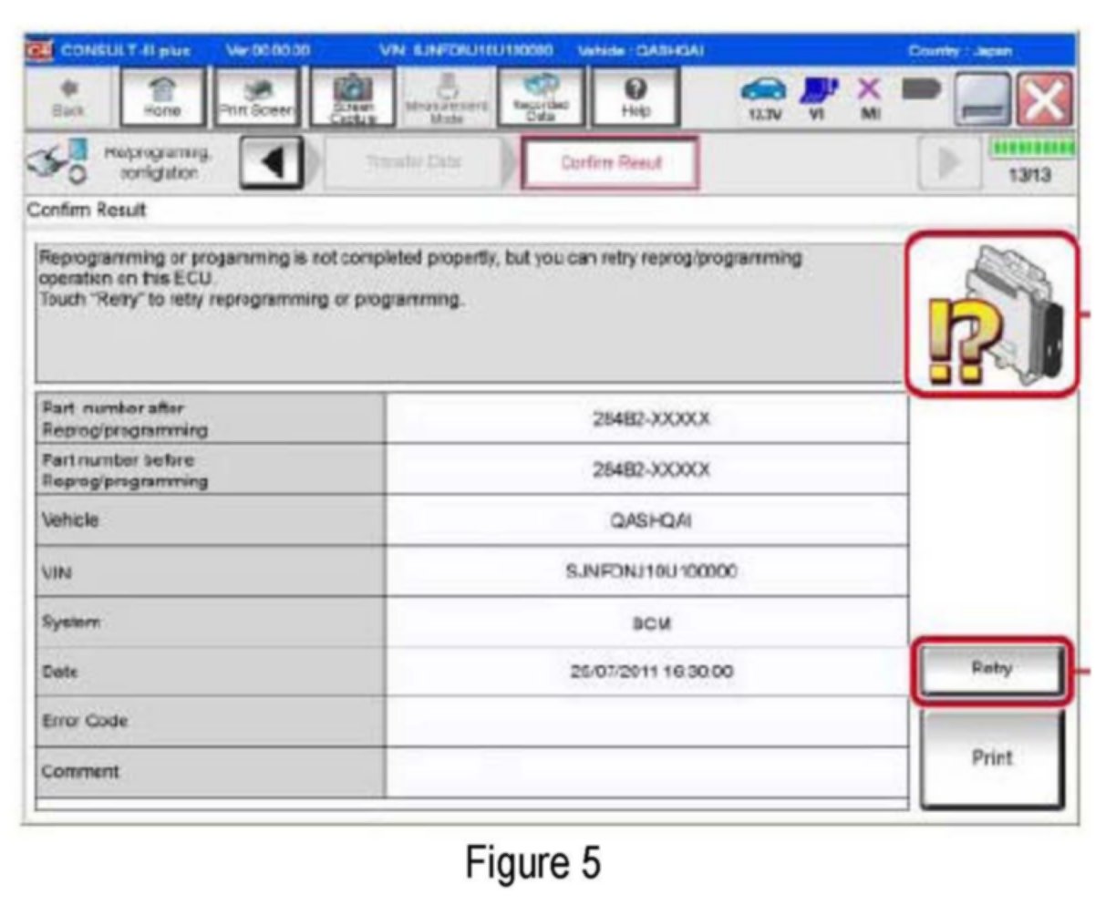 ^ If you are not familiar with the reprogramming procedure. Refer to "CONSULT- III plus (C-III plus) ECM Reprogramming" general procedure.
