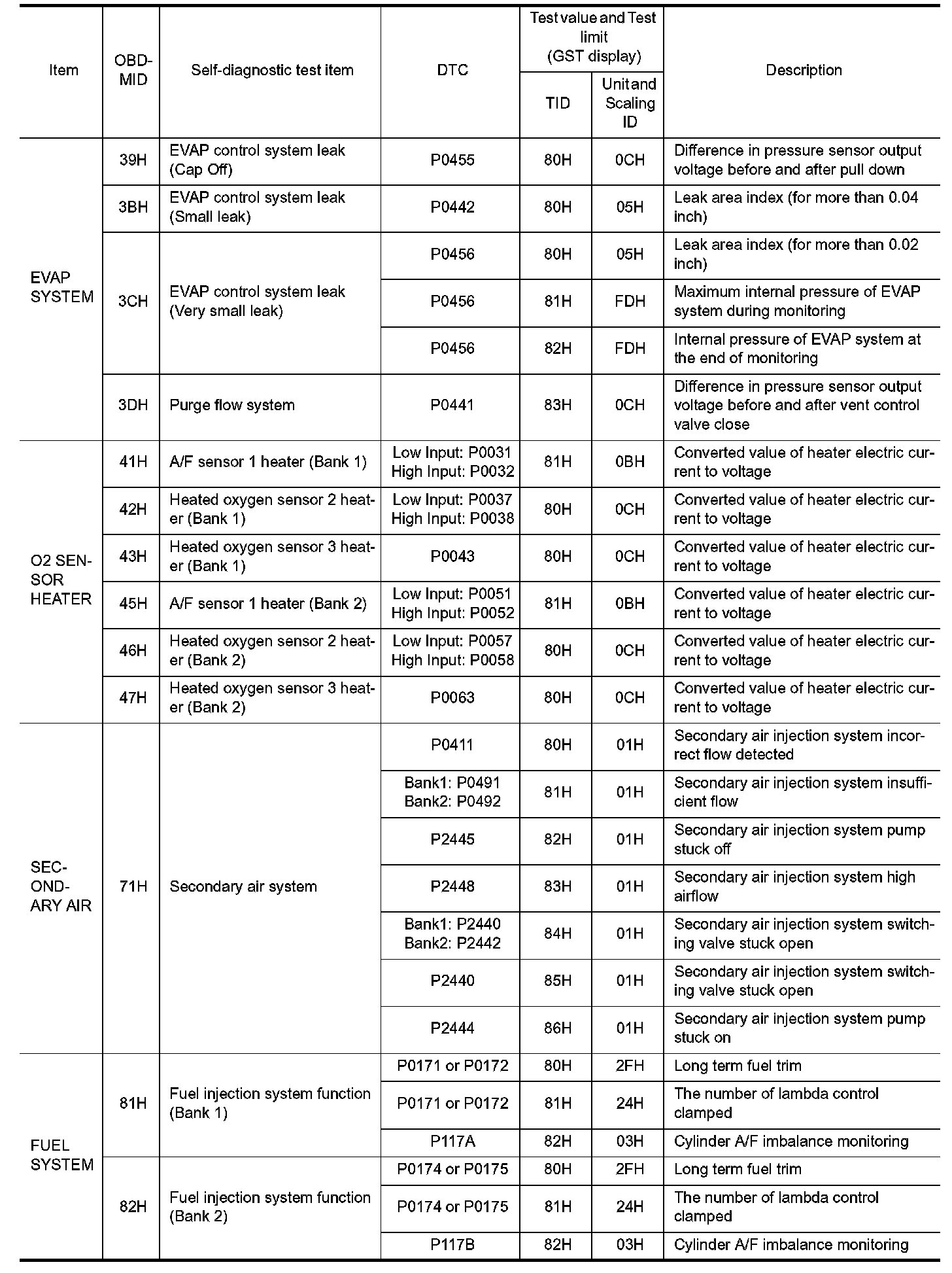 These data (test value and test limit) are specified by On Board Monitor ID (OBDMID), Test ID (TID), Unit and