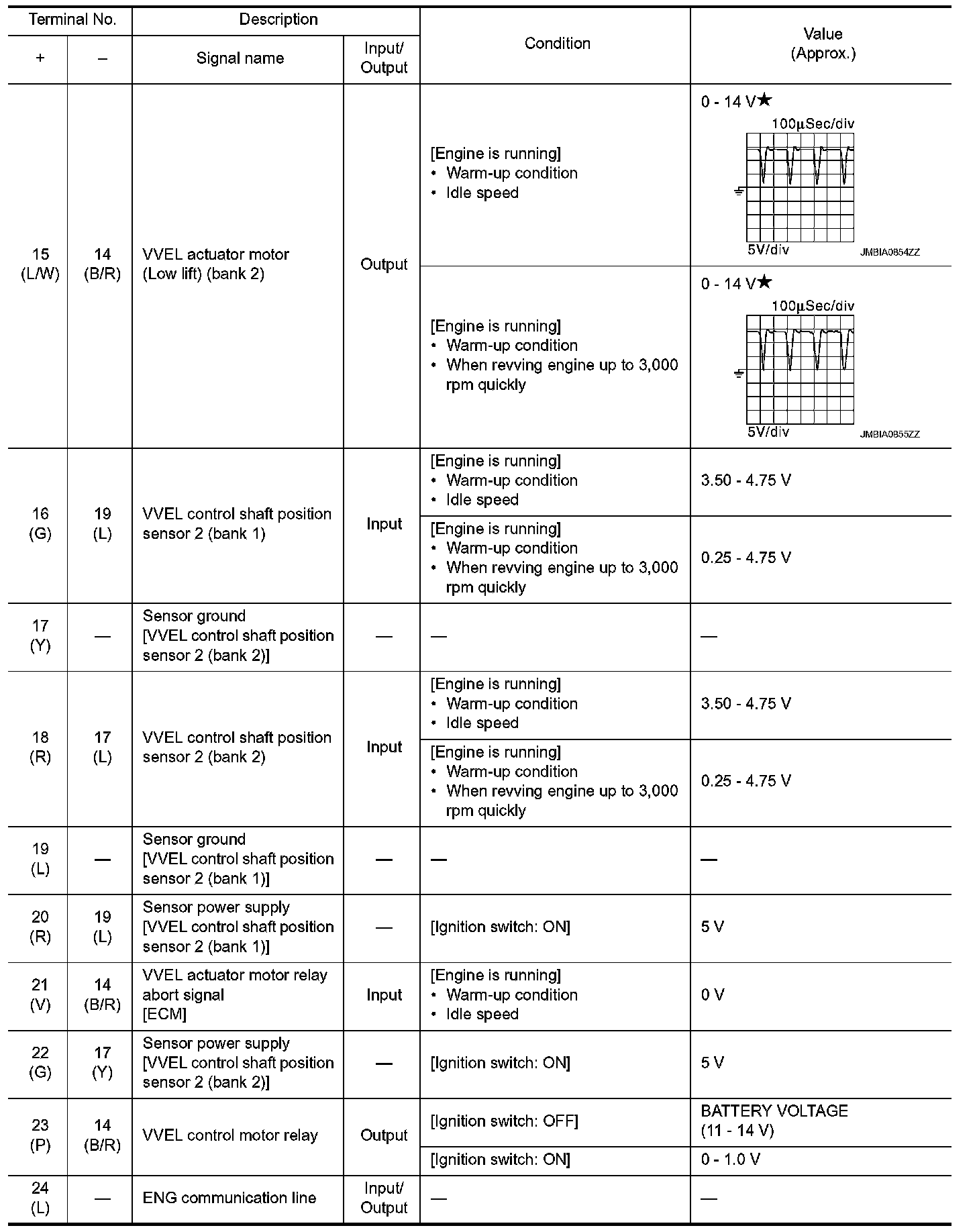 - VVEL control module is located under the battery. Temporarily remove the battery to check voltage of the terminals.
