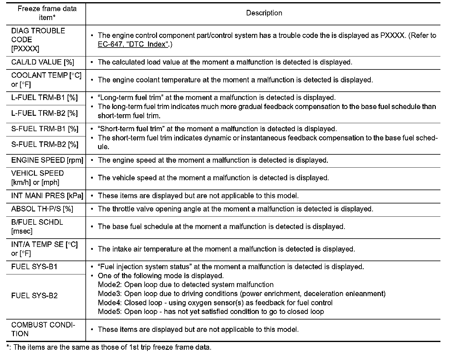 Freeze Frame Data and 1st Trip Freeze Frame Data