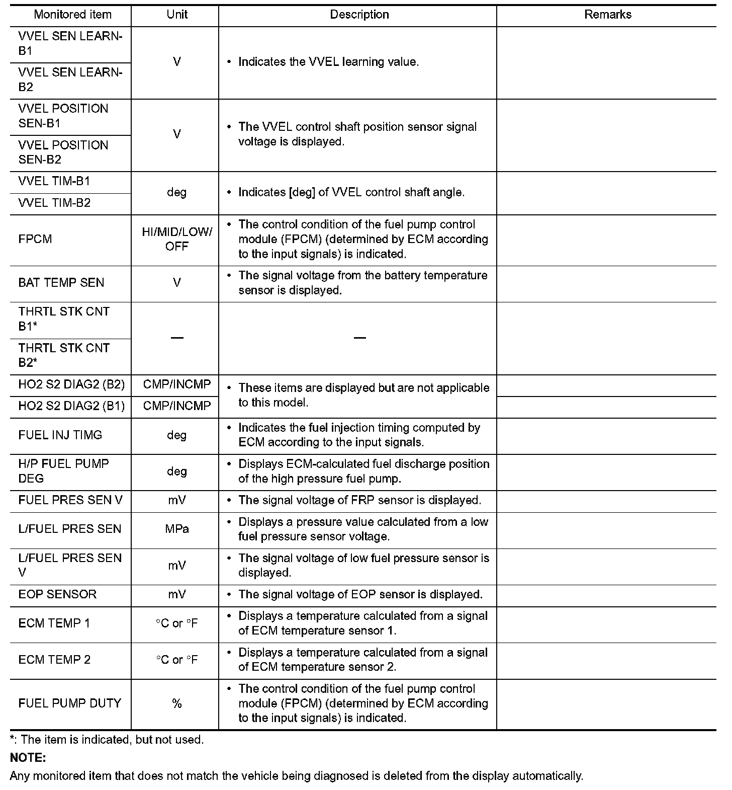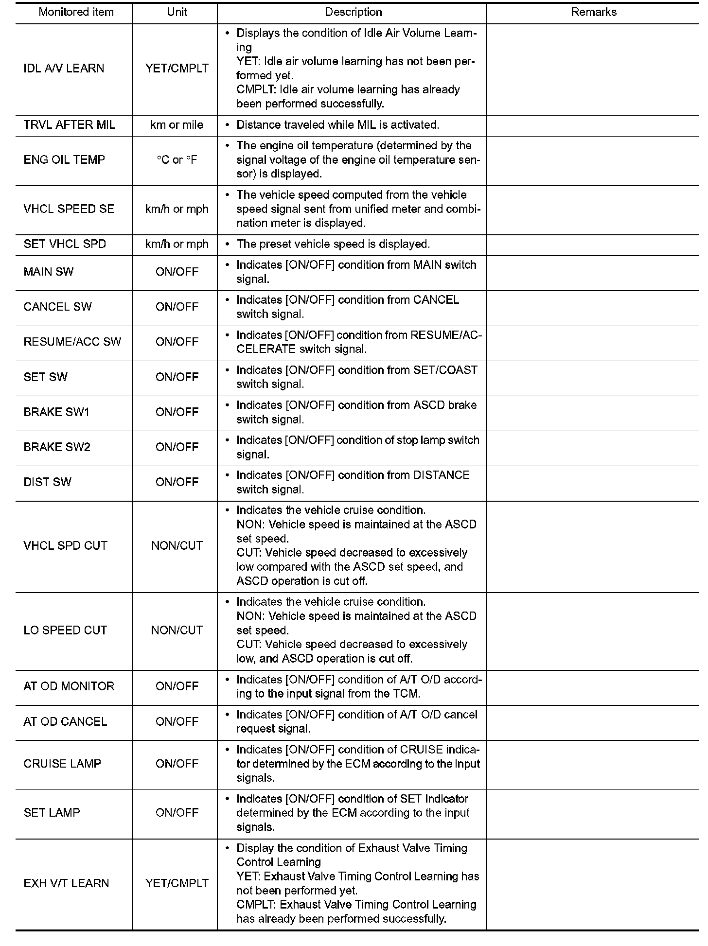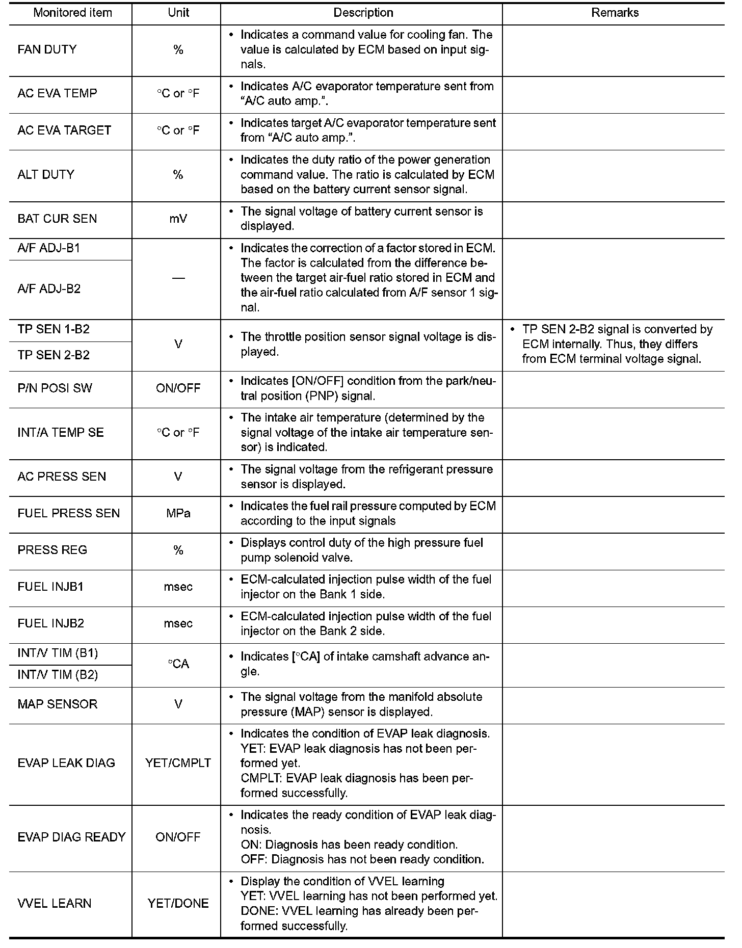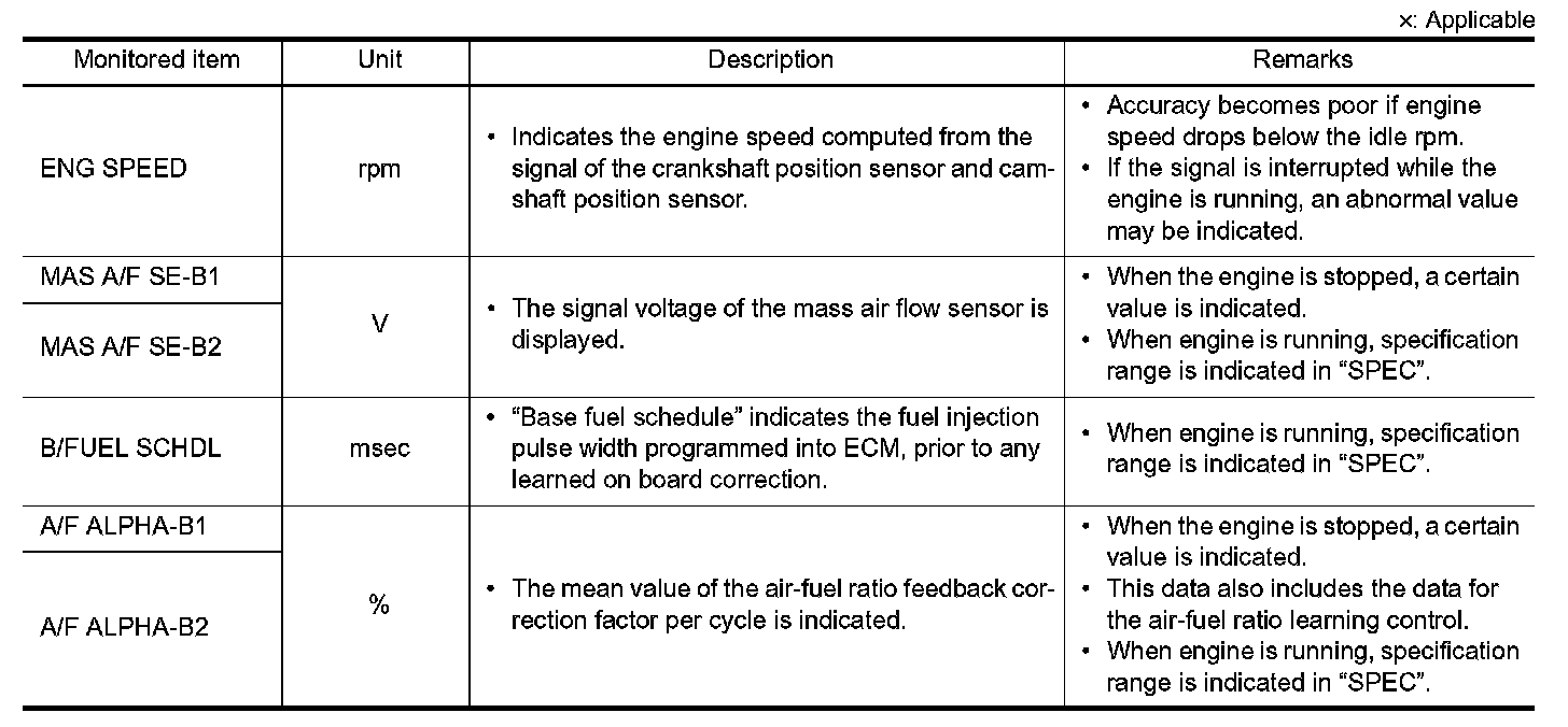 - If "TIME" is neither "0" nor "1t", the DTC occurred in the past and ECM shows the number of times the vehicle has been driven since the last detection of the DTC.