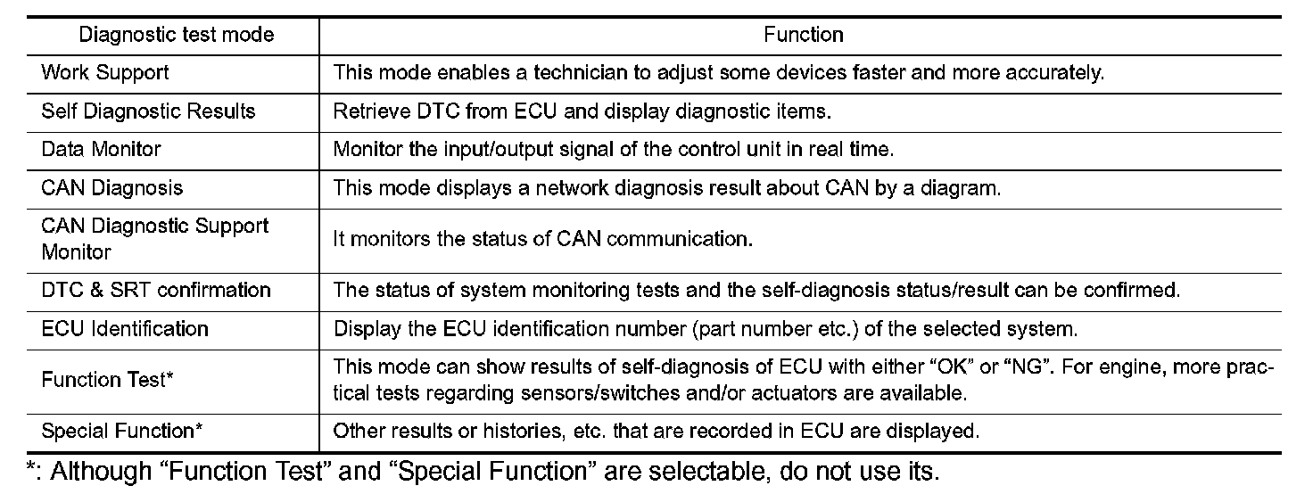 *: Although "Function Test" and "Special Function" are selectable, do not use its.