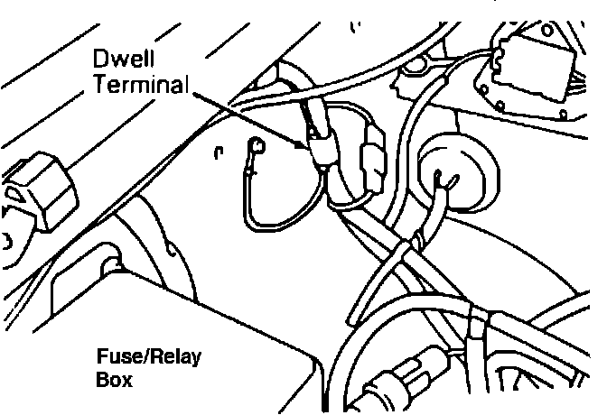 2. Connect dwell or duty cycle meter to dwell terminal. Use 4 cylinder scale.