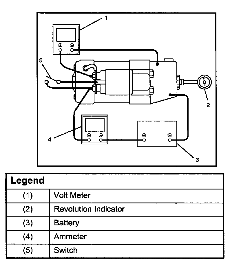 Fix the starter on the test bench, and wire as shown in illustration. When the switch is closed, the current flows and the starter runs under no load. At this time, measure current, voltage and speed to check if they satisfy the standard.