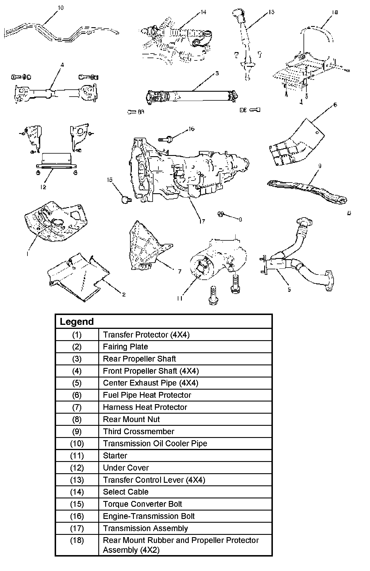 3. Remove rear propeller shaft and front propeller shaft (4X4).