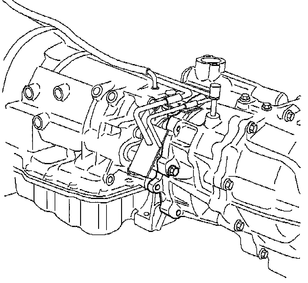9. Install oil cooler pipe clamp and bracket to the converter housing.