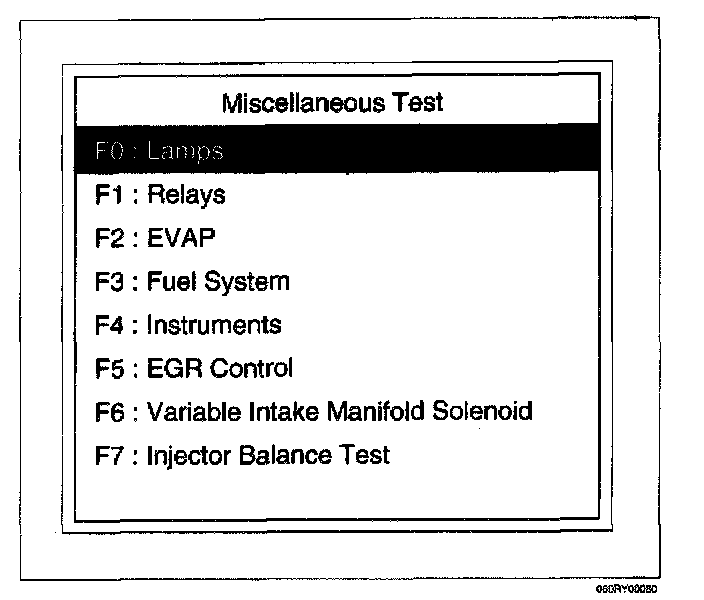 4. Select F0: Lamps Test in the Miscellaneous Test.