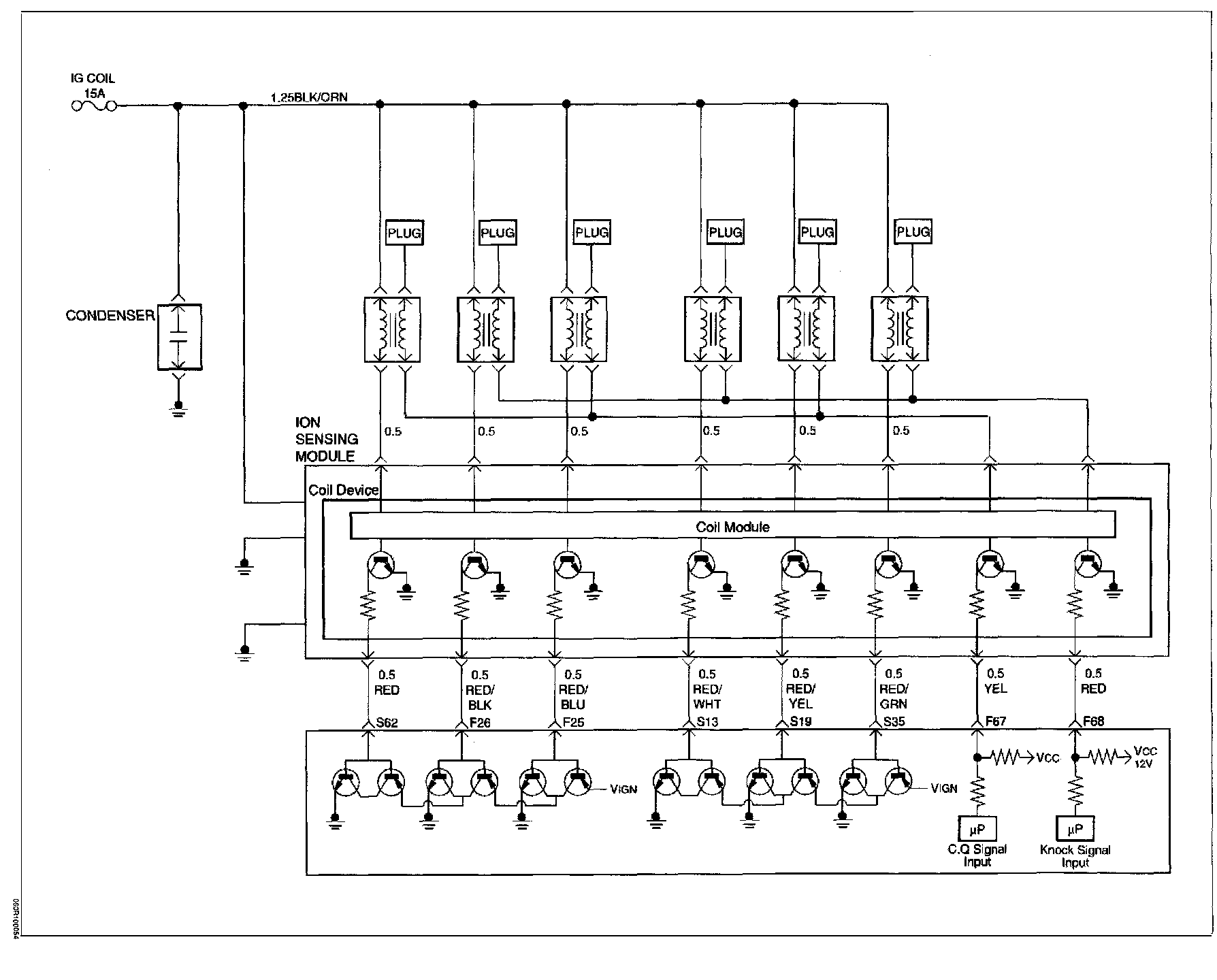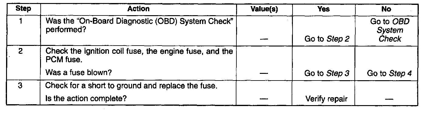 During crank, the PCM monitors the CKP 58X signal. The CKP signal is used to determine which cylinder will fire first. After the CKP 58X signal has been processed by the PCM, it will command all six injectors to allow a priming shot of fuel for all the cylinders. After the priming, the injectors are left "OFF" during the next six 58X reference pulses from the CKP. This allows each cylinder a chance to use the fuel from the priming shot. During this waiting been received by the PCM. The ION sensor signal allows the PCM to operate the injectors sequentially based on camshaft position. If the camshaft position signal is not present at start - up, the PCM will begin sequential fuel delivery with a 1-in-6 chance that fuel delivery is correct. The engine will run without a ION sensor signal, but will set a DTC code.