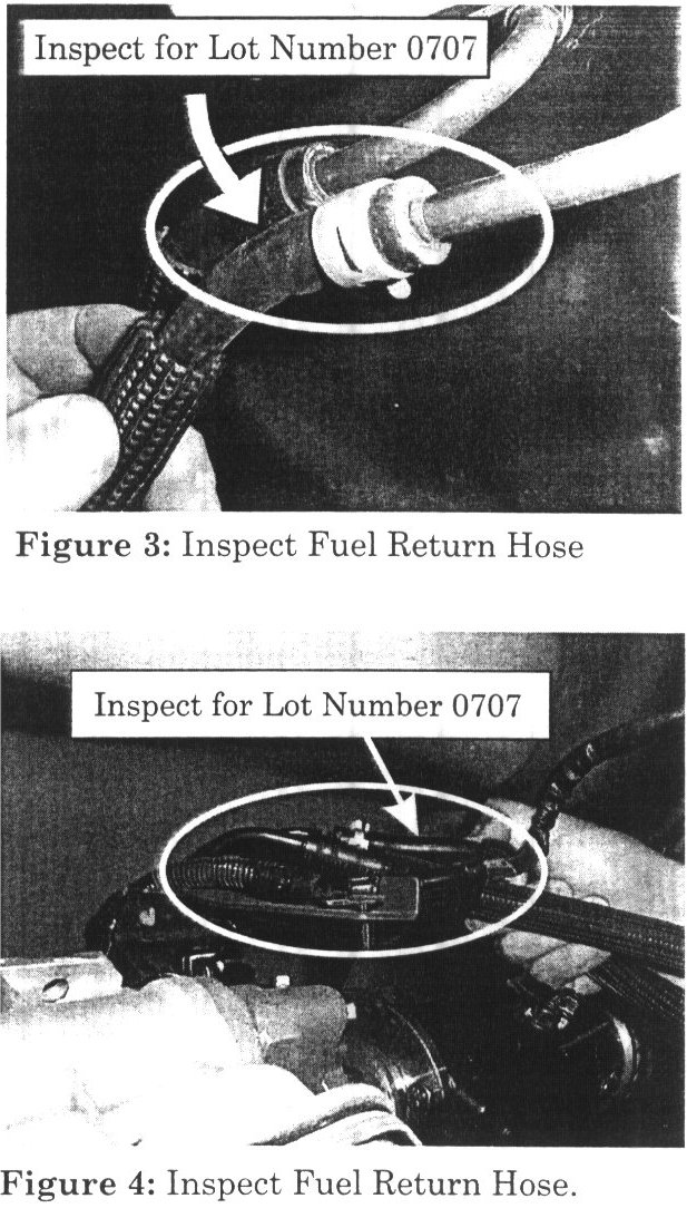 4. Inspect the Fuel Return Hose and Fuel Hose Kit for Lot Number 0707 (Figures 1, 2, 3, and 4).